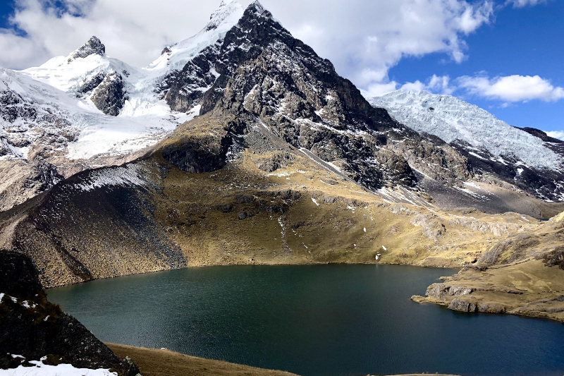 The route to this place is full of views of different glacier peaks, bubbling streams, rivers, small lakes, chinchillas, alpacas, local shepherds and llamas.