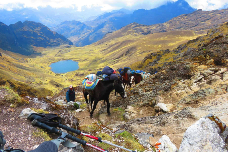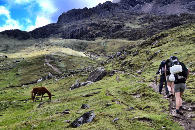 We will stop for lunch. Our chefs will delight you with typical Andean food. We will continue walking after lunch to our second pass, Paso Qolqecasa, located at 4200 meters above sea level. We will go down the hill for thirty minutes to our first camp at Yanacocha.